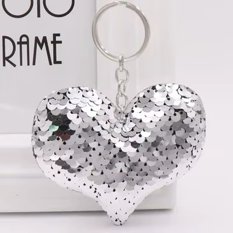 1PCS Cute Heart Keychain Glitter Pompom Sequins Key Ring Gifts for Women Llavero